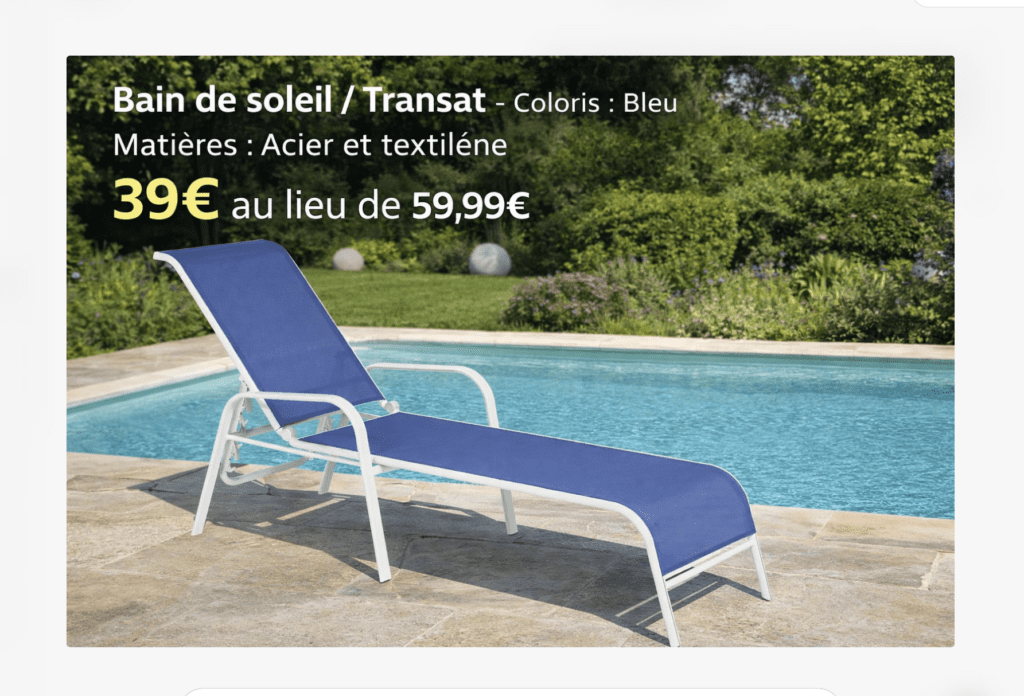 ✅ [NEUF] Bain de soleil / Transat – Coloris : Bleu – Matières : Acier et textilène